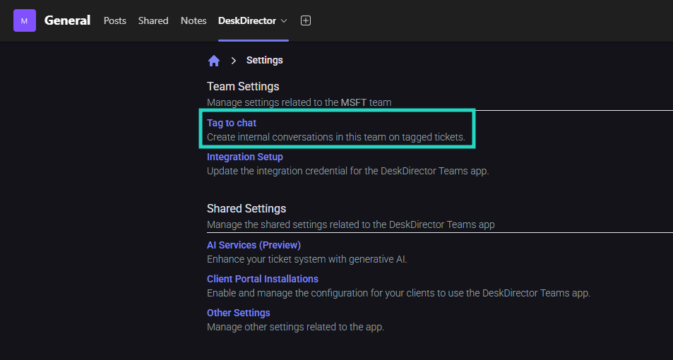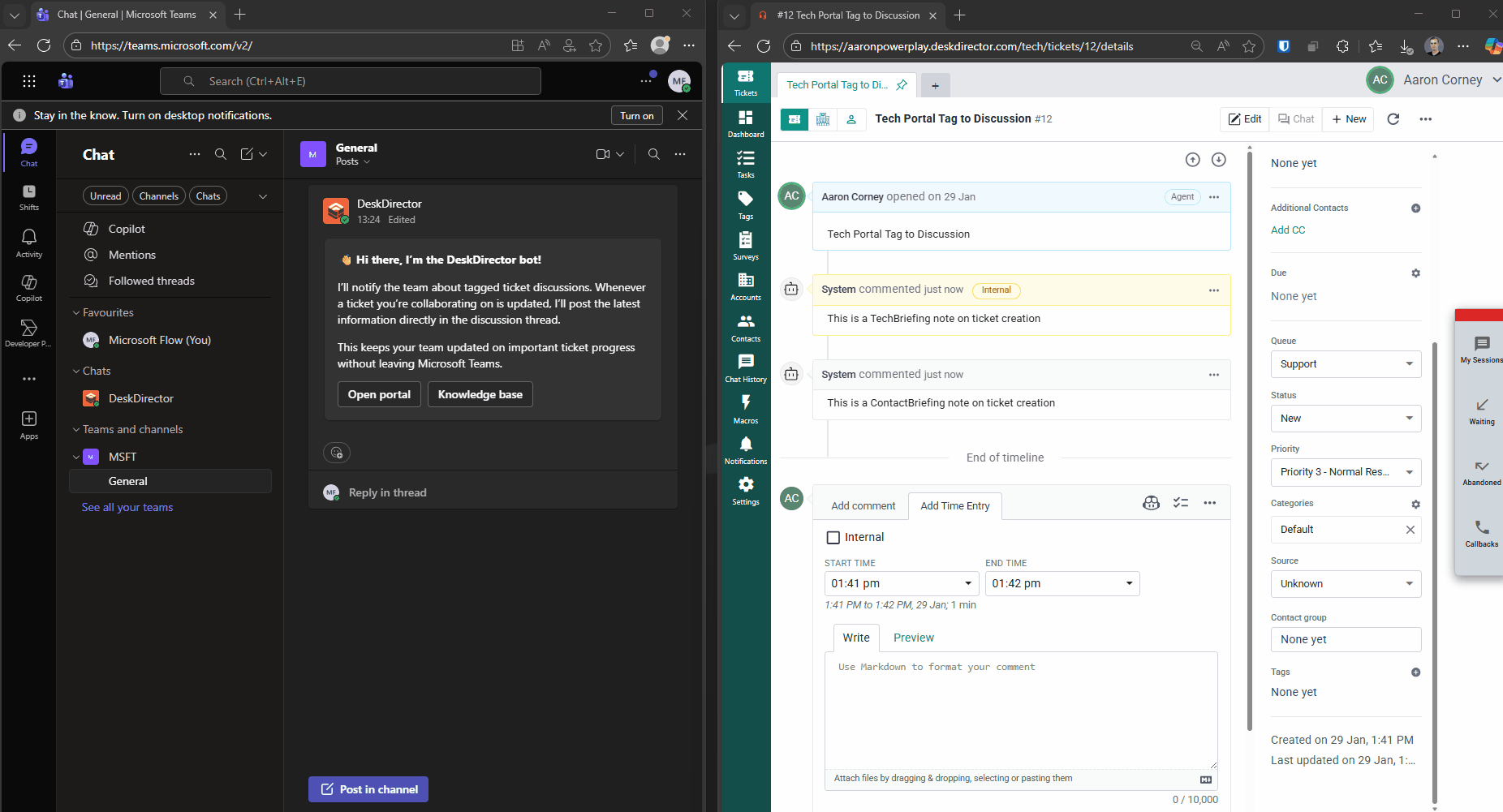 - Centralised Communication: Links DeskDirector tickets to dedicated Teams conversations