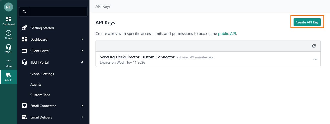 - Head to the Admin Portal and open the Advanced > API Keys tab