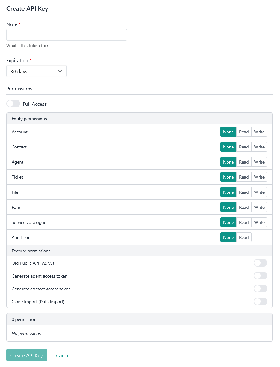 - Fill out the details and allowed permissions for your API Key: