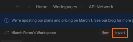 - In Postman, select Import: