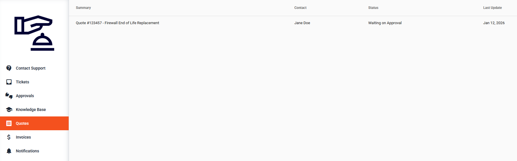 Any companies/contacts that have the Quotes permissions enabled in the Admin Portal will be able to see the Quotes tab in the Client Portal: