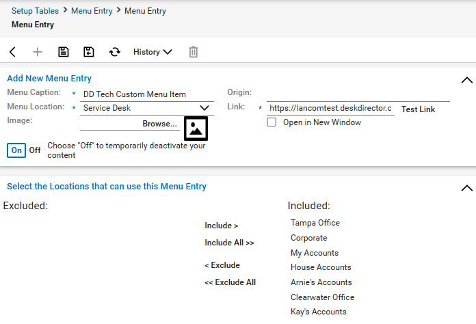 - Menu Location: The ConnectWise menu this item will be available under, most commonly Service Desk