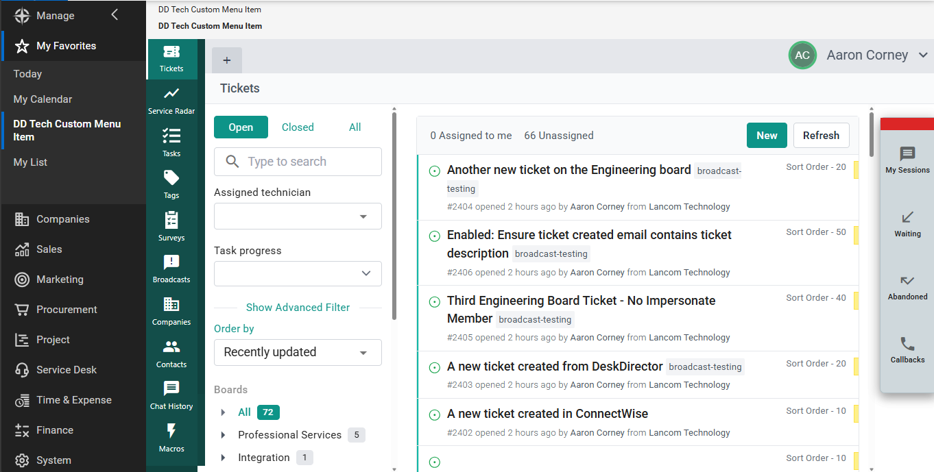 ConnectWise Custom Menu Item for DeskDirector Tech Portal