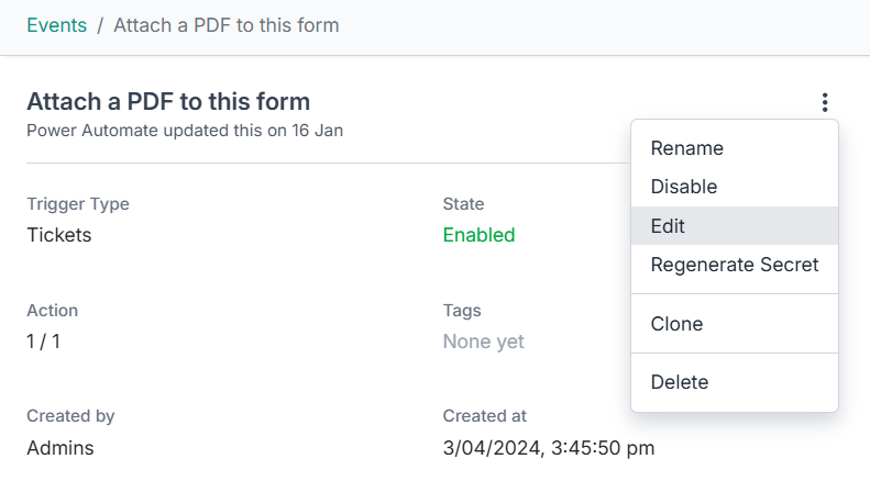 - Created by: Admin created Workflows are created within DeskDirector. Workflows created by Power Automate indicate they are flows that use a DeskDirector connector trigger.