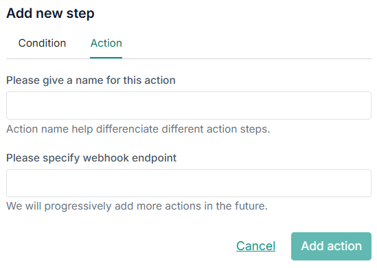 - Optionally, if you want the event to trigger something outside of Power Automate, add a step using the Action: