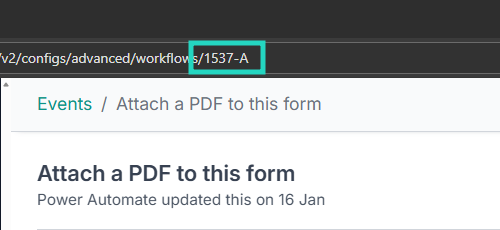 Workflows can sometimes take some time to sync over and show in Power Automate. However, they are still usable even if they aren't showing. If you open your Workflow in DeskDirector, you will see the Workflow ID in the URL for the Workflow.