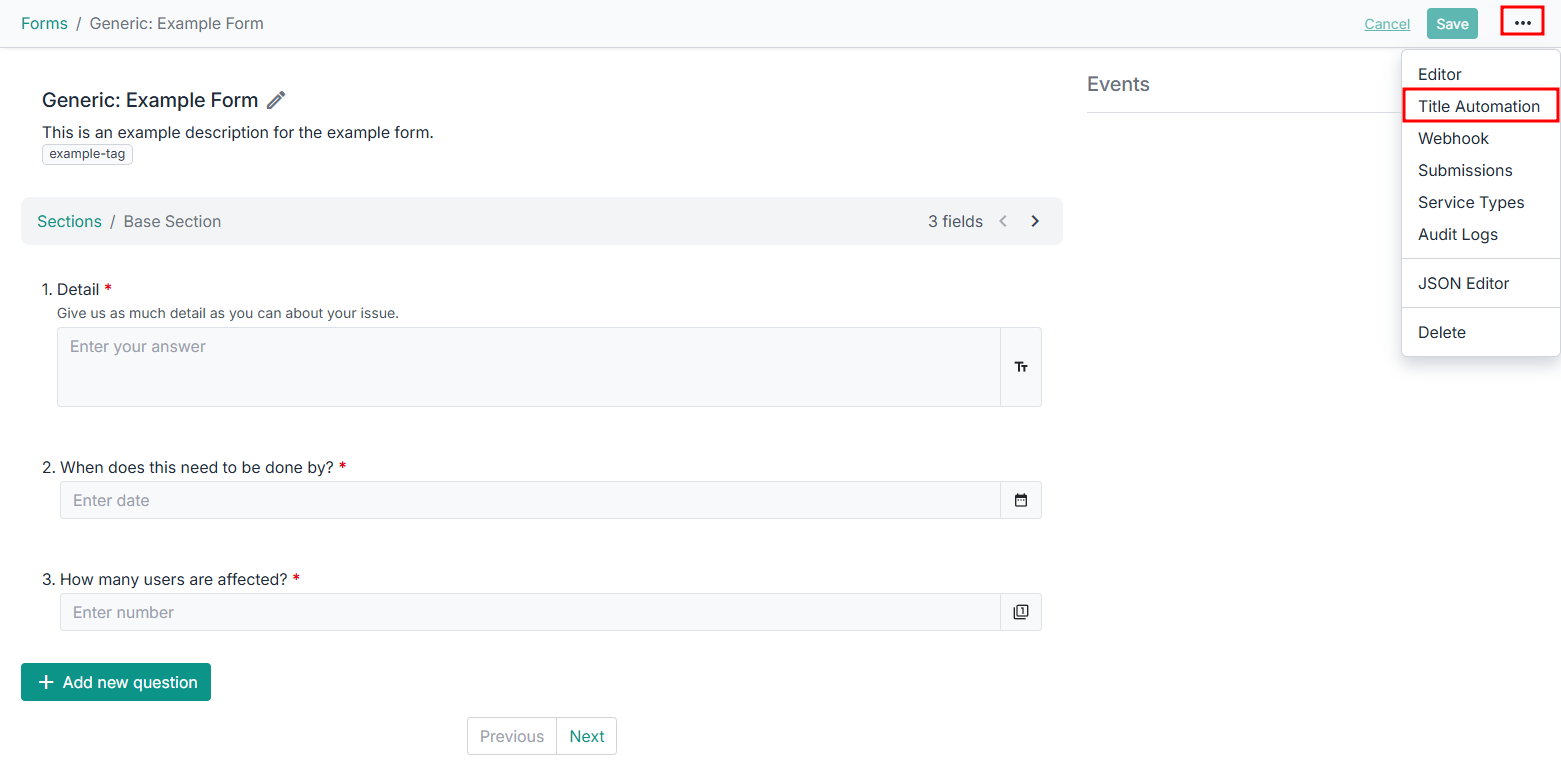 By default, all forms will have a “Ticket Title” field prepended to the top of them. This feeds into the ticket title when it is created. You don’t need to configure this yourself.