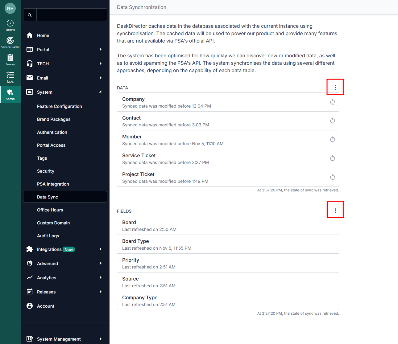 Entity syncing in this case refers to the syncing of things like contacts, companies, boards, and other things from your PSA into DeskDirector.