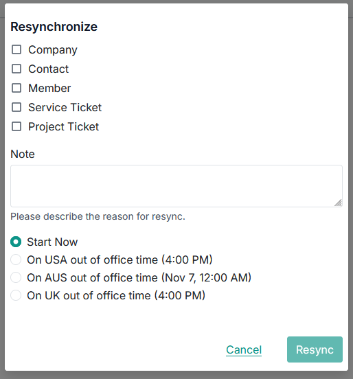 By design, DeskDirector will do one sync job with your PSA on initial setup, and create a copy of the information on our own database. Entities will be synced based on the date/time they were last updated, in relation to the last sync process that ran.