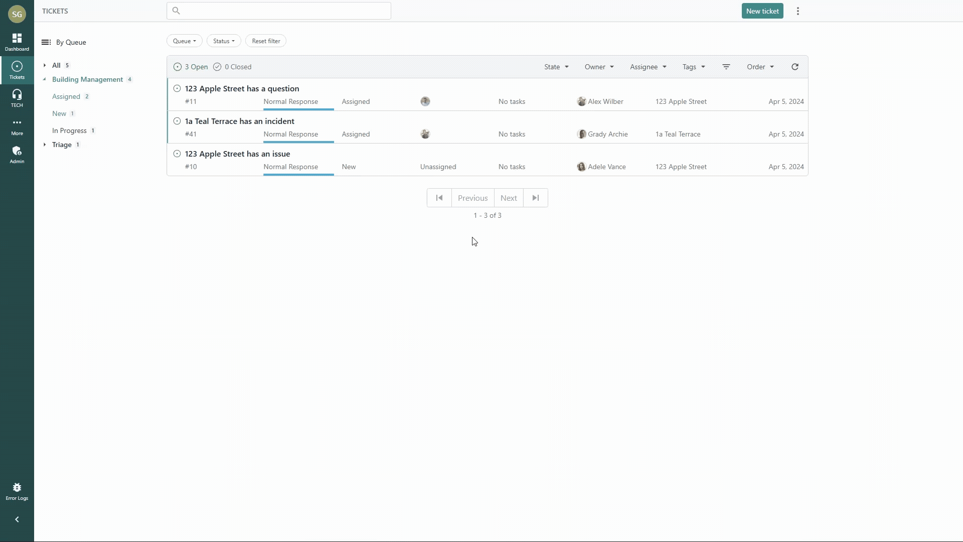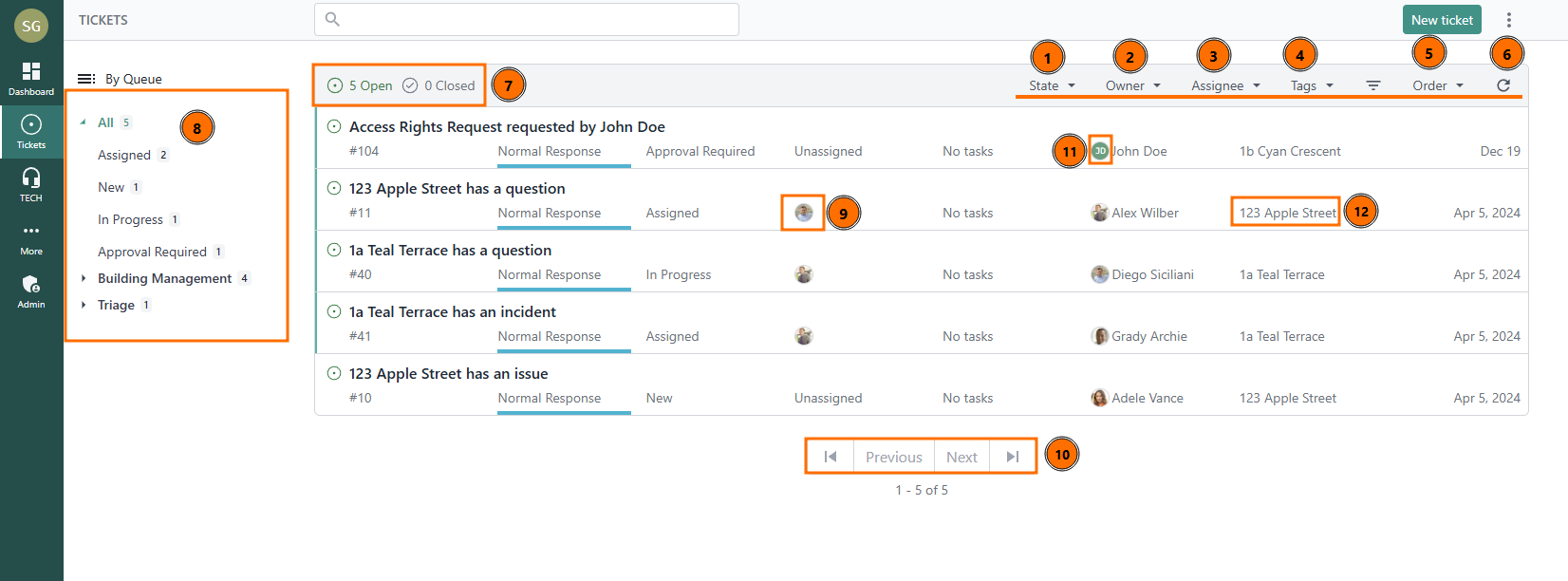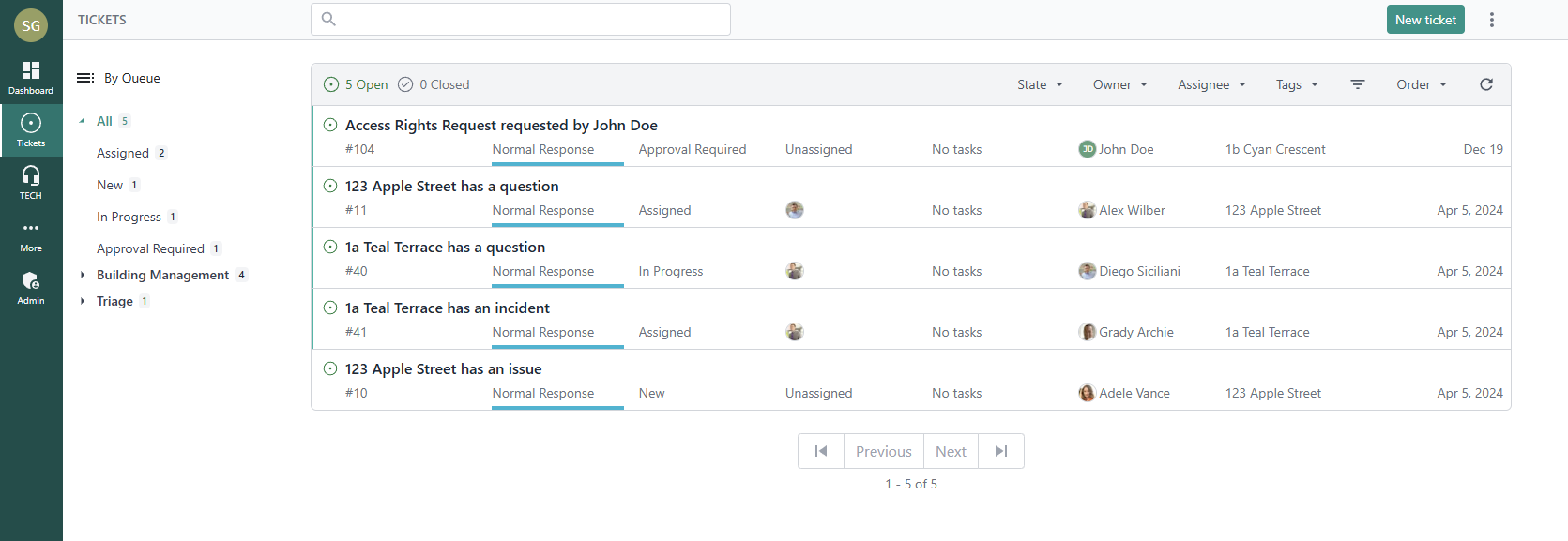 With the new ticket list, you can create tickets, filter for specific tickets, and browse for tickets that need your attention.
