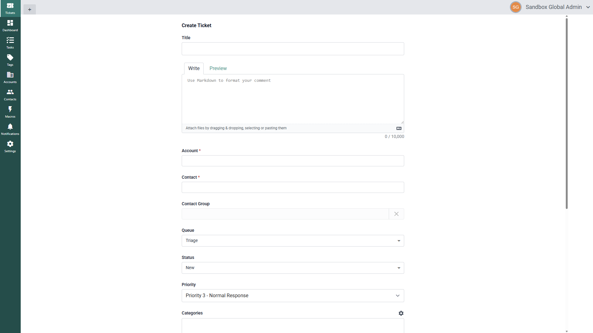 To create a new ticket, select New ticket and then fill in ticket details as you normally would: