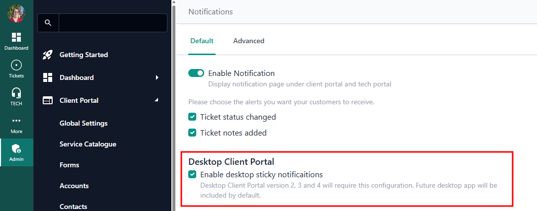 Navigate to Client Portal > Notifications section of the Admin Portal, then check "Enable sticky notifications".