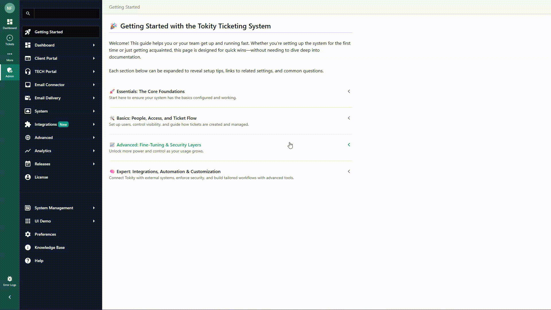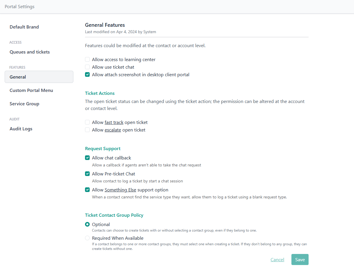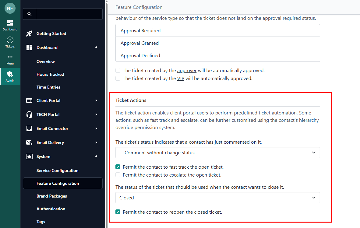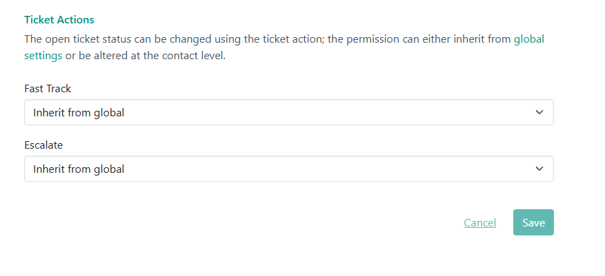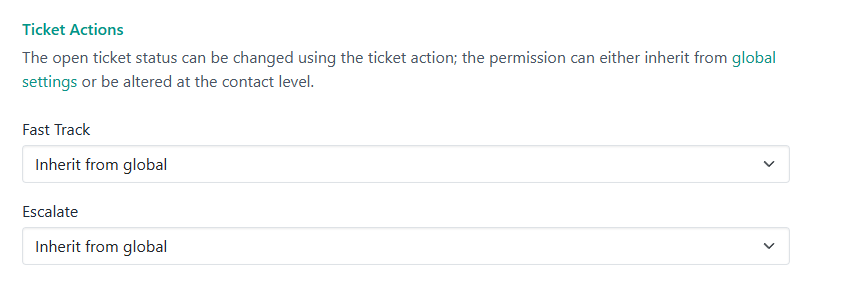- Ticket Actions: set whether the user is allowed to fast track or escalate their tickets.