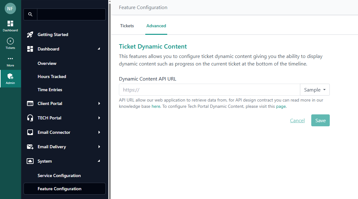 Under the Advanced tab, you can add a URL to be used globally for dynamic content. We won't go further into this here as it's an in-depth topic, but you can read more in our article on Dynamic Ticket Content.