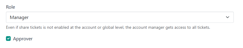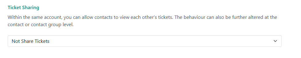 - Ticket Sharing: Whether users of this Account should be able to view all tickets that are under that Account (i.e: some user A will be able to see some user B's tickets if they are contacts under the same Company Account):