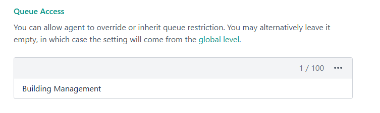 - Queue Access: which queues the Agent is allowed to work tickets on: