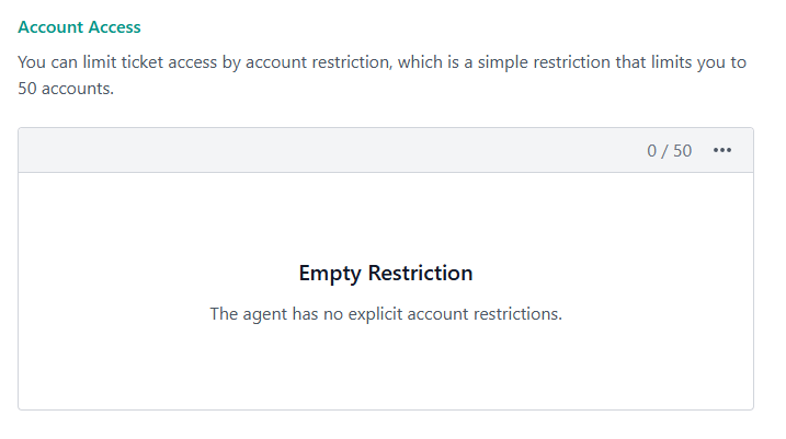 - Account Access: which Accounts the Agent is allowed to work on tickets for: