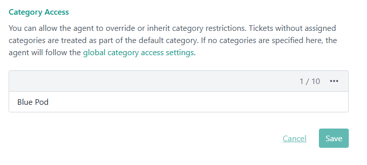 - Category Access: which Categories the Agent is allowed to work on tickets in: