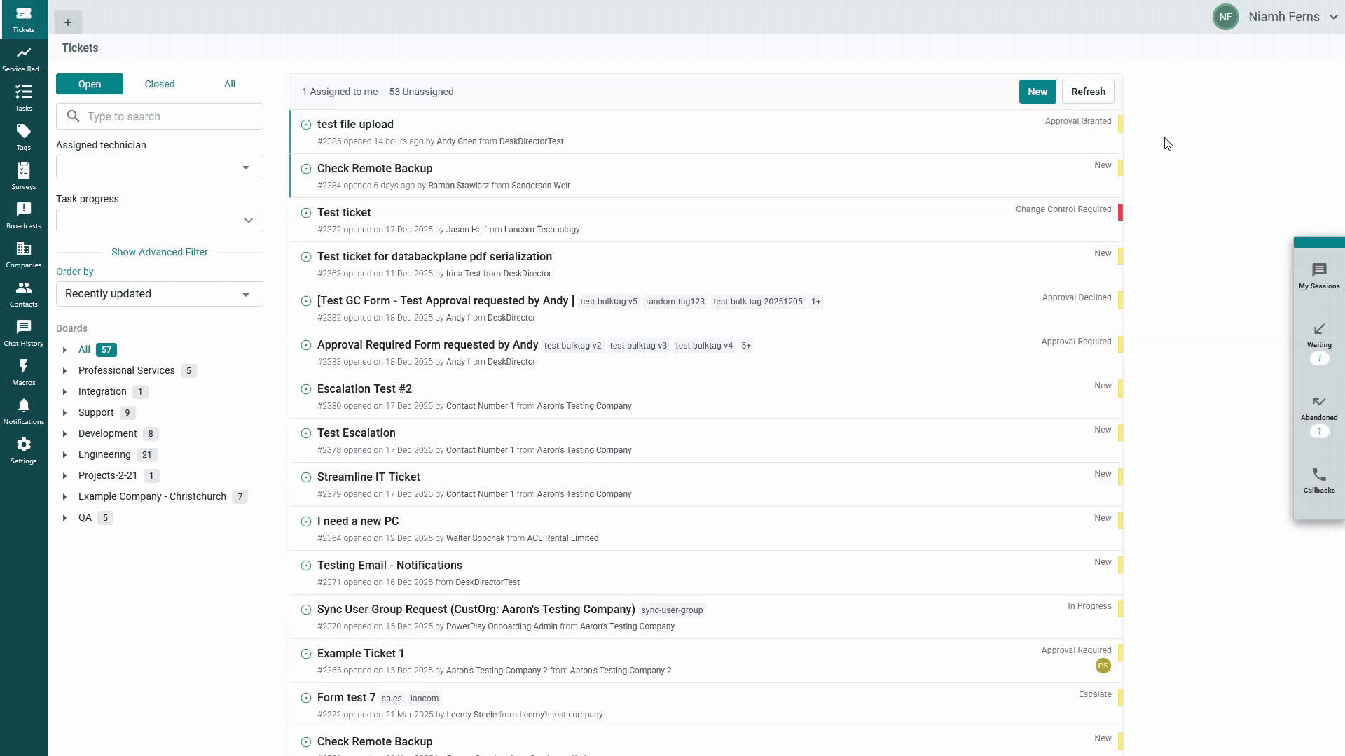 Client>Companies>{Company}>Feature Permissions. - Enable the Ticket Chat and Chat Callback features as desired.