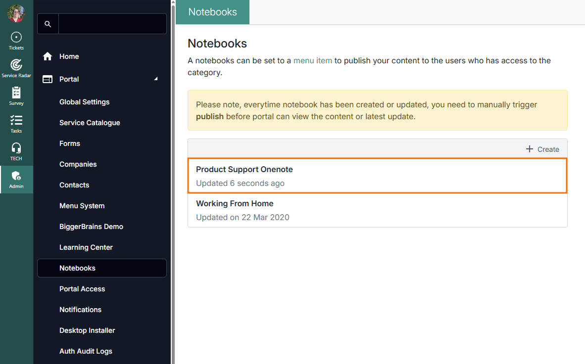 - Head to the Admin Portal and open the Client Portal > Notebooks tab
