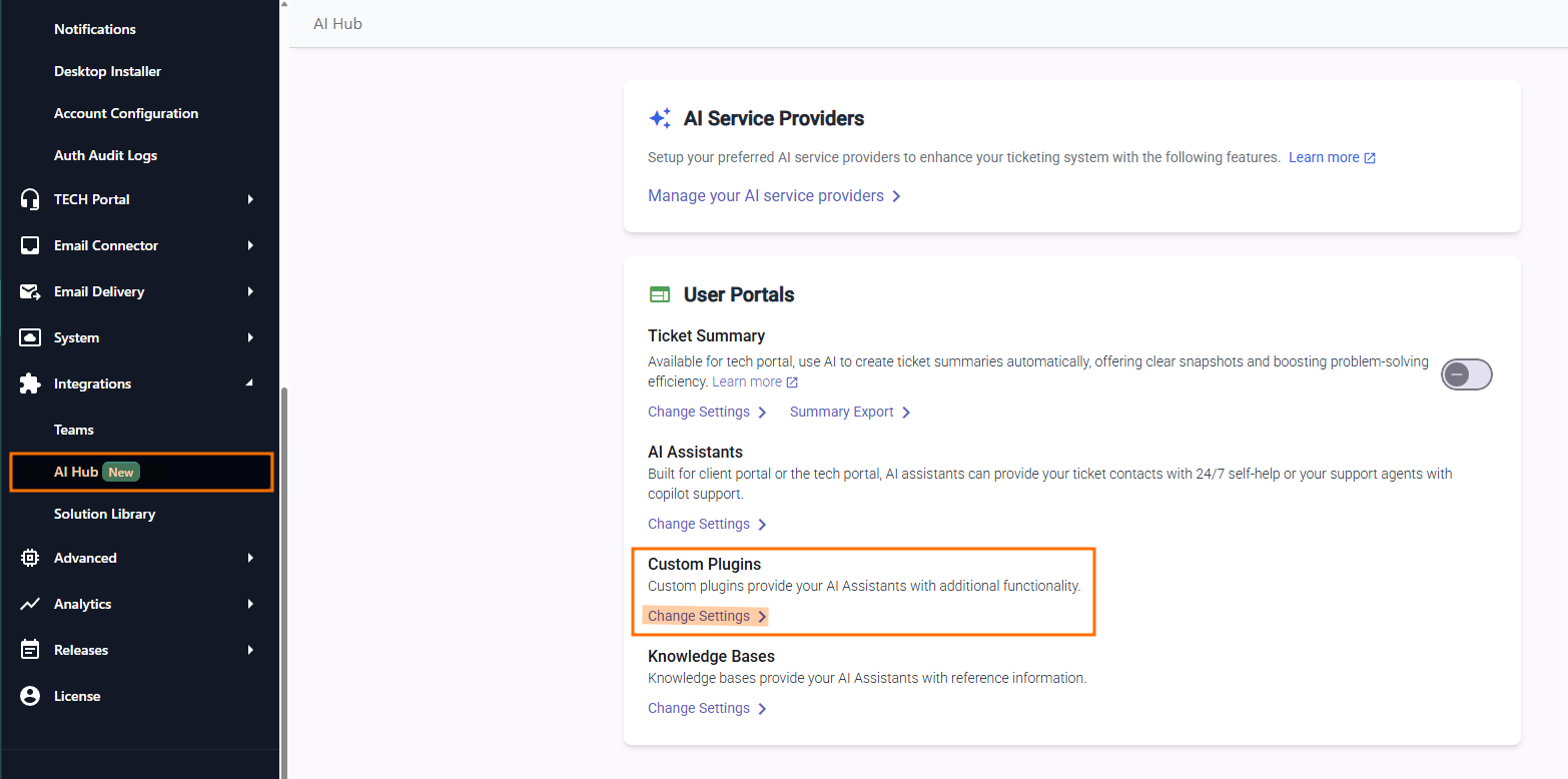 Empower your DeskDirector AI Assistants with Custom Tools (also known as plugins) to perform a wide range of actions, from interacting with external services to executing specific operational tasks. This guide will walk you through setting up, assigning, and testing custom plugins to extend the capabilities of your AI Assistants.