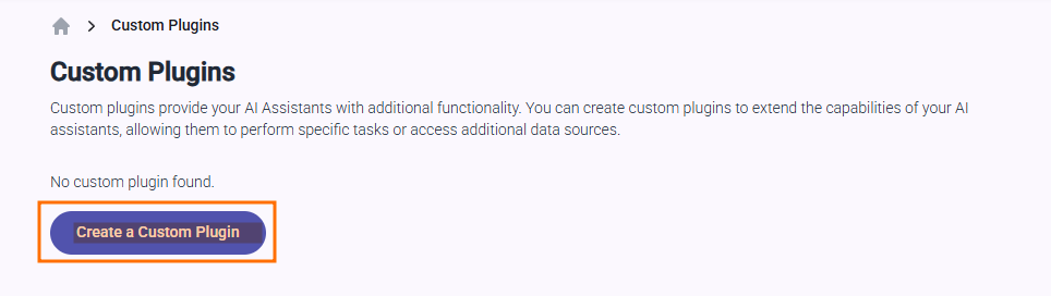 - Initiate Creation: Click the Create a Custom Plugin button to begin the setup process: