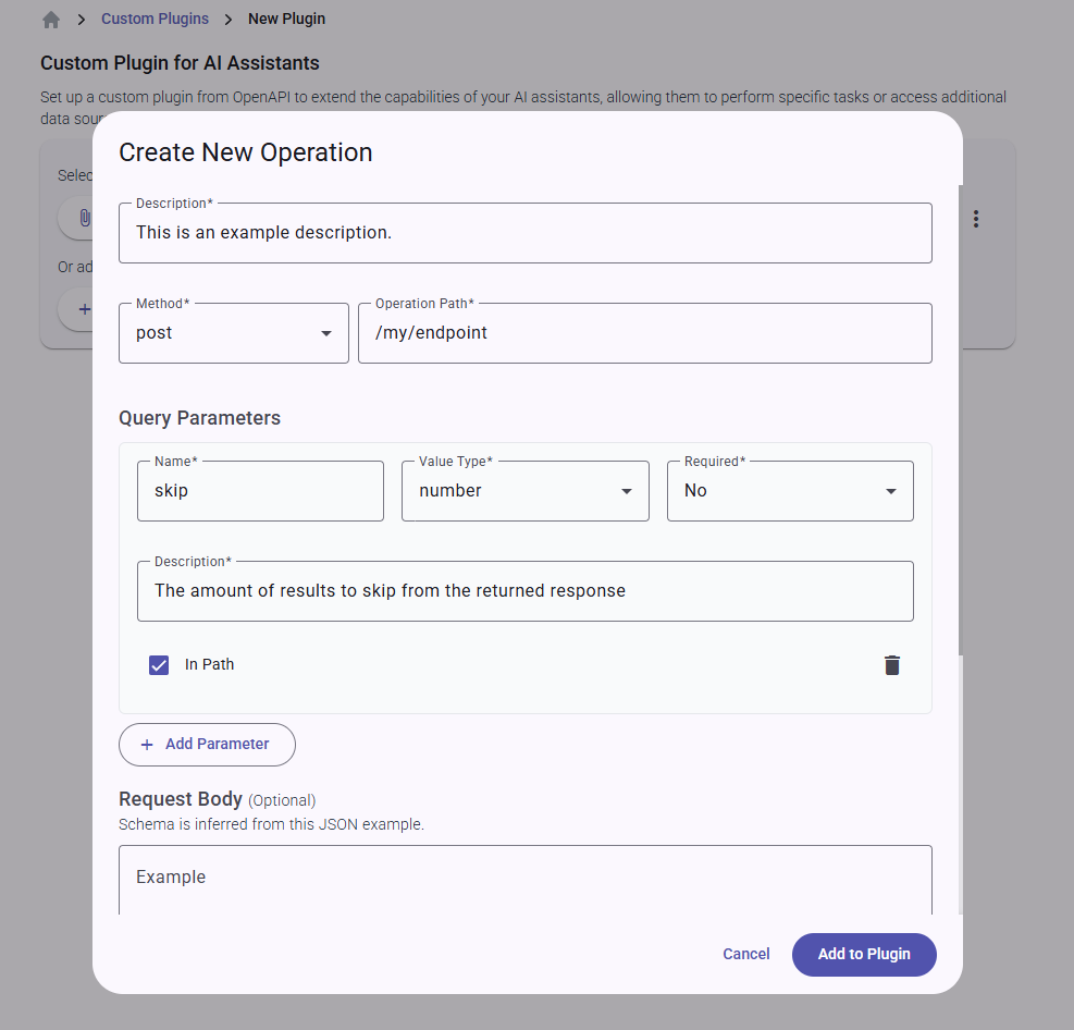 - Write Clear, Descriptive Names and Descriptions: The AI relies heavily on the names and descriptions you provide for both the plugin itself and its individual operations.
