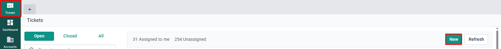 - Search : Using this, you can use keywords from the ticket details, summary, tags, ticket number, and others to search for the ticket.