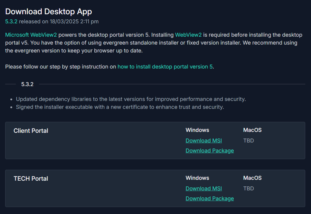 A good first step in isolating any issue with the desktop portal is to make sure you are running on the latest version. We frequently release patches for all of our portals to address new issues as they arise. You can get your version from the Help menu and then, if needed, verify this against the latest version available in your Admin Portal under Client Portal > Desktop Installer.